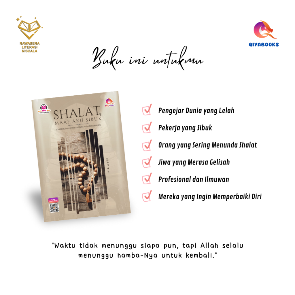 Kita berkata “nanti saja” pada azan, padahal kita tak tahu apakah masih ada “nanti” untuk kita. Buku ini mengajakmu berhenti sejenak — bukan dari pekerjaan, tetapi dari kelalaian.